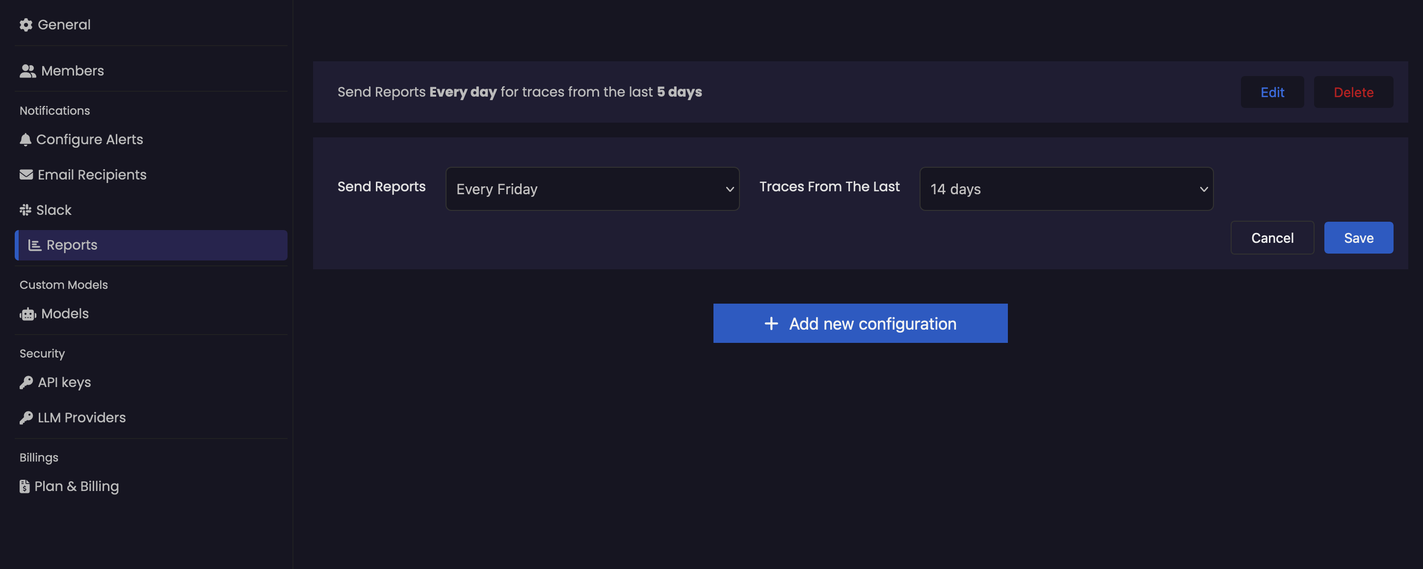 Weekly Reports: To receive a report every Friday covering the last 14 days of traces: