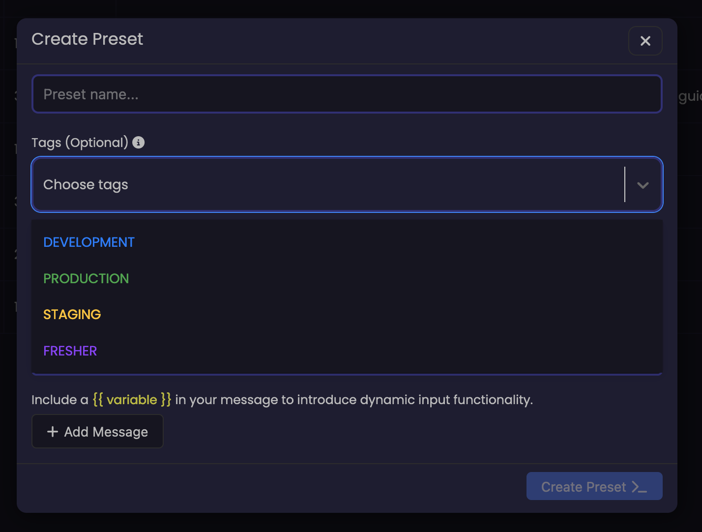 - Click “Create Preset” to apply the tags to the prompt.